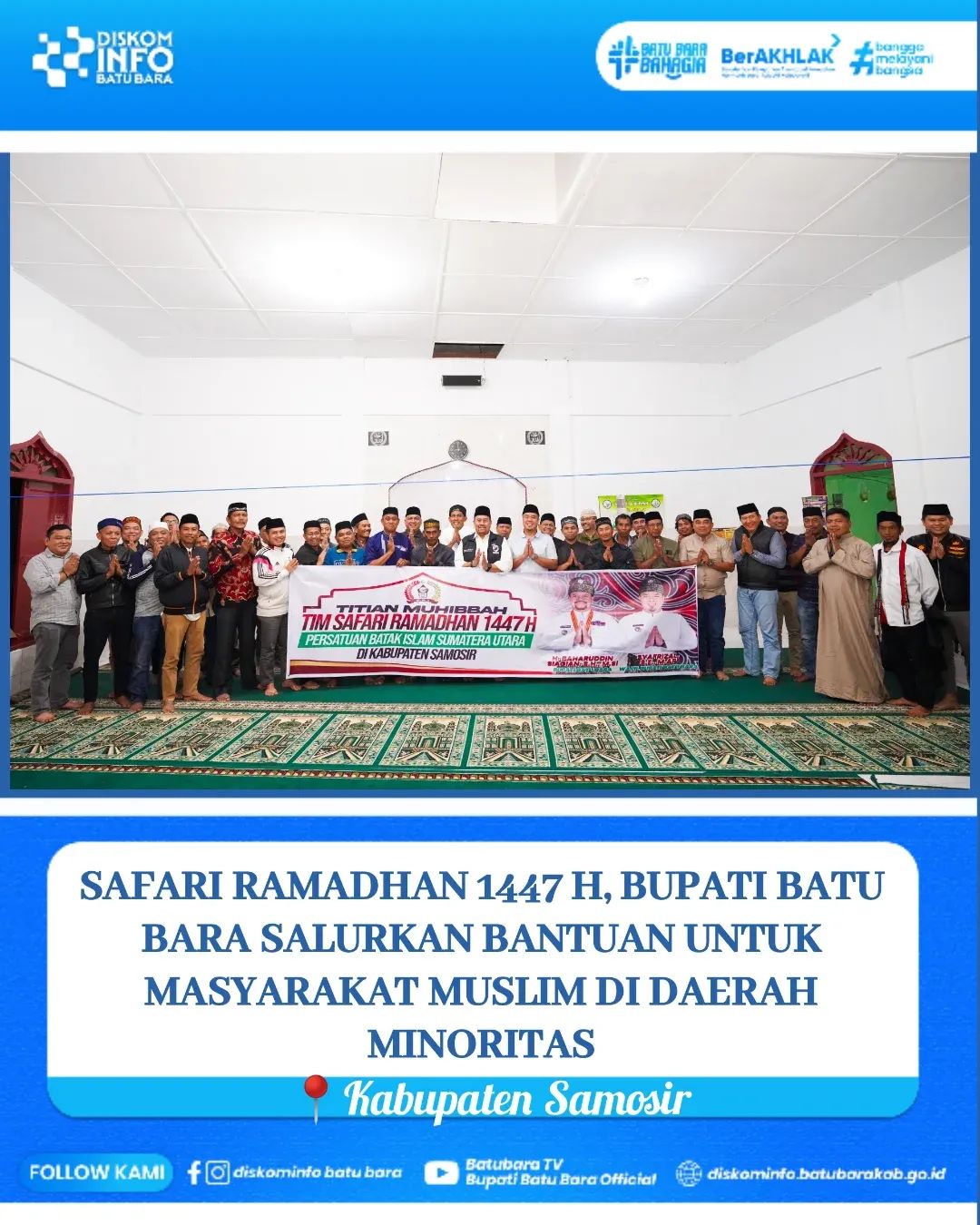 Tapanuli ll Batara TV.com //-Sebagai upaya memperkuat silaturahmi dan meneguhkan nilai toleransi di tengah keberagaman, Bupati Batu Bara H. Baharuddin Siagian, S.H., M.Si., bersama Wakil Bupati Syafrizal, S.E., M.AP., kembali melaksanakan Titian Muhibah Safari Ramadhan 1447 Hijriah bersama DPW Persatuan Batak Islam Sumatera Utara dengan menyambangi masyarakat muslim di wilayah minoritas di Kabupaten Samosir, Sabtu (14/03/2026).