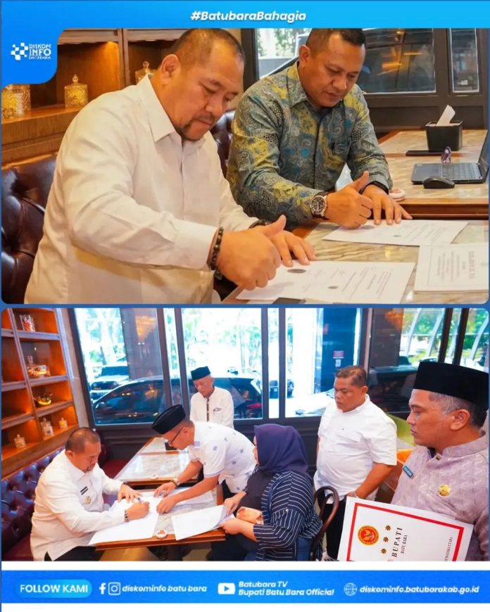 Batubara ll Batara TV Group// Bupati Batubara menandatangani naskah perjanjian hibah barang Atas pelepasan HGU dari PT Bakrie Sumatera plantation tbk dengan pemerintah kabupaten batubara, Kegiatan berlangsung di Ruang Kerja Bupati Batu Bara Kecamatan Lima Puluh, Jumat (24/4/2026).