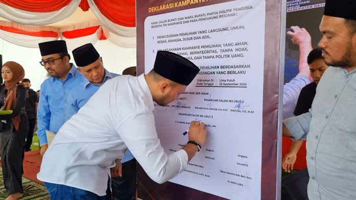 Pasangan Bupati Batubara nomor 3 Zahir – Aslam ikuti pelaksanaan deklarasi kampanye damai yang dilaksanakan Komisi Pemilihan Umum (KPU) Kabupaten Batu Bara.