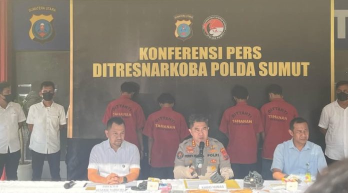 Satuan Reserse Narkoba Polda Sumut, berhasil amankan empat orang tersangka Narkoba dengan modus body wrapping, Selasa malam, 15 April 2025.