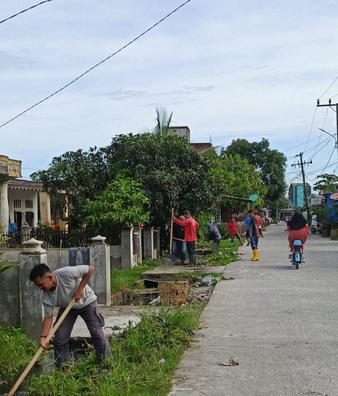 Dengan rasa antusias dari masyarakat, warga pun turut serta membantu, terutama pada sekitaran pada parit depan rumah masing masing, yang di kumpulkan ditepian parit, yang kelak akan di angkut oleh petugas kebersihan dari desa, yang menggunakan betor desa.
