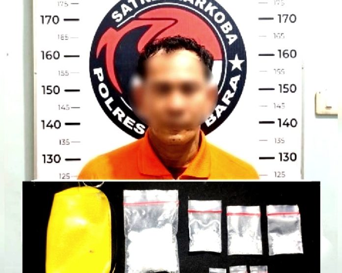 Seorang pria inisial N (47) warga Dusun II Desa Bandar Sono Kecamatan Nibung Hangus Kabupaten Batu Bara ditangkap personel Satres Narkoba Polres Batu Bara.