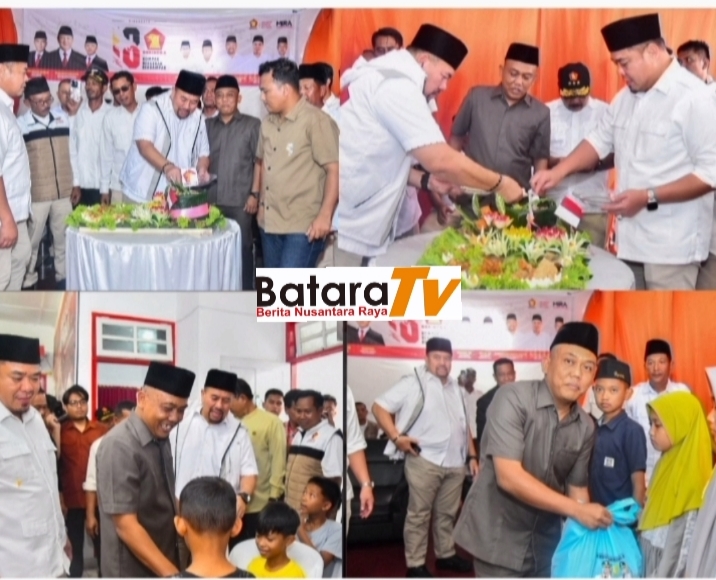 Rangkaian peringatan HUT ke-18 Partai Gerindra di Kabupaten Batu Bara ditutup dengan pemotongan nasi tumpeng sebagai ungkapan rasa syukur atas perjalanan panjang partai yang terus berupaya memadukan perjuangan politik dengan kerja-kerja sosial