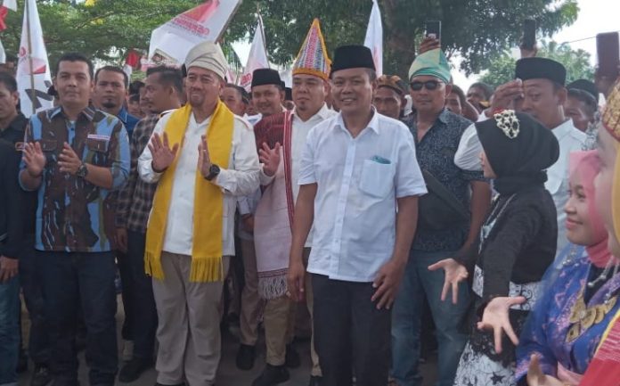 Pasangan Baharuddin dan Safrizal yang di dukung dari delapan partai politik,yakni partai Gerindra,partai PKB,partai PPP, partai PKS, partai PERINDO,partai PBB, partai GOLKAR, serta partai Buruh,serta partai PAN.dan seluruh para pendukung dari partai siap untuk mengatarkan paslon ke kantor KPU dengan penuh rasa semangat walaupun cuaca dalam keadaan panas.