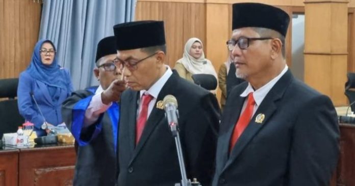 Pengadilan Negeri Kisara melantin dan mengucapakan sumpah janji Ketua DPRD Kabupaten Batubara Periode 2024-2029, di Aula Gedung DPRD,Selasa (14/1/2025)
